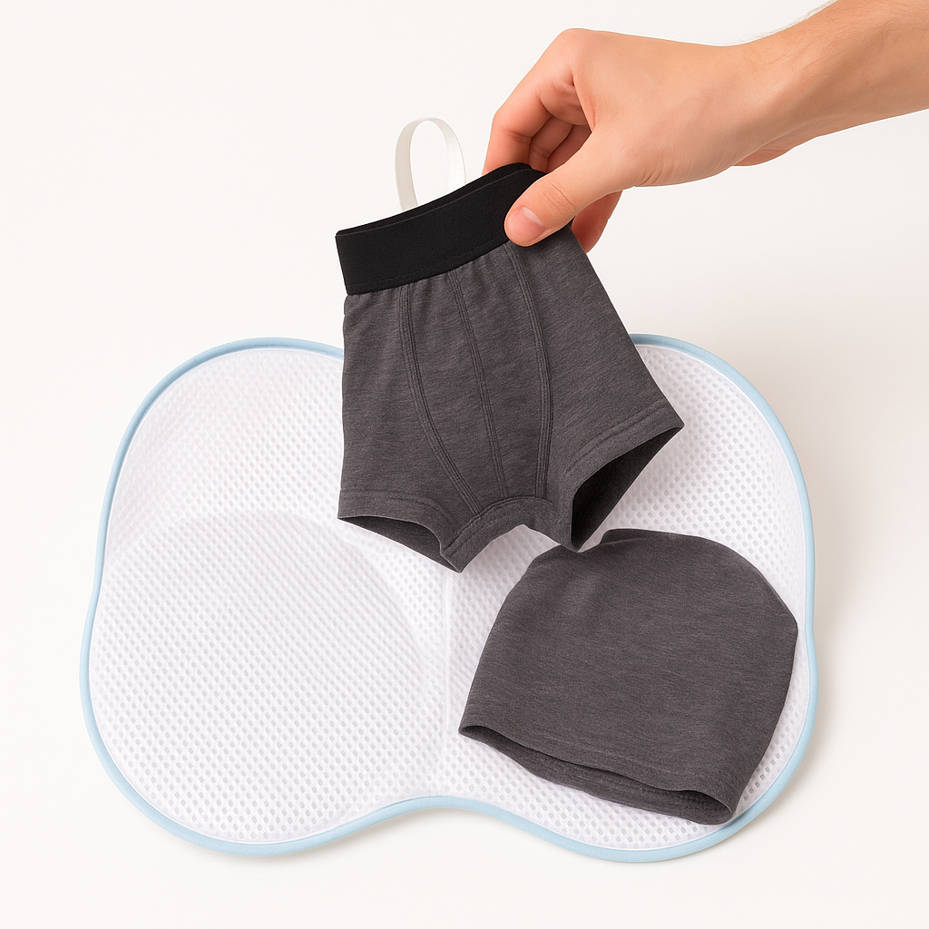 Carefully place the DryBoxer inside the WashBox. This way, your underwear stays protected during washing